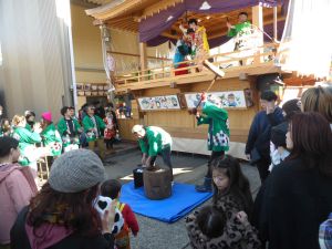 太鼓に合せて餅つき